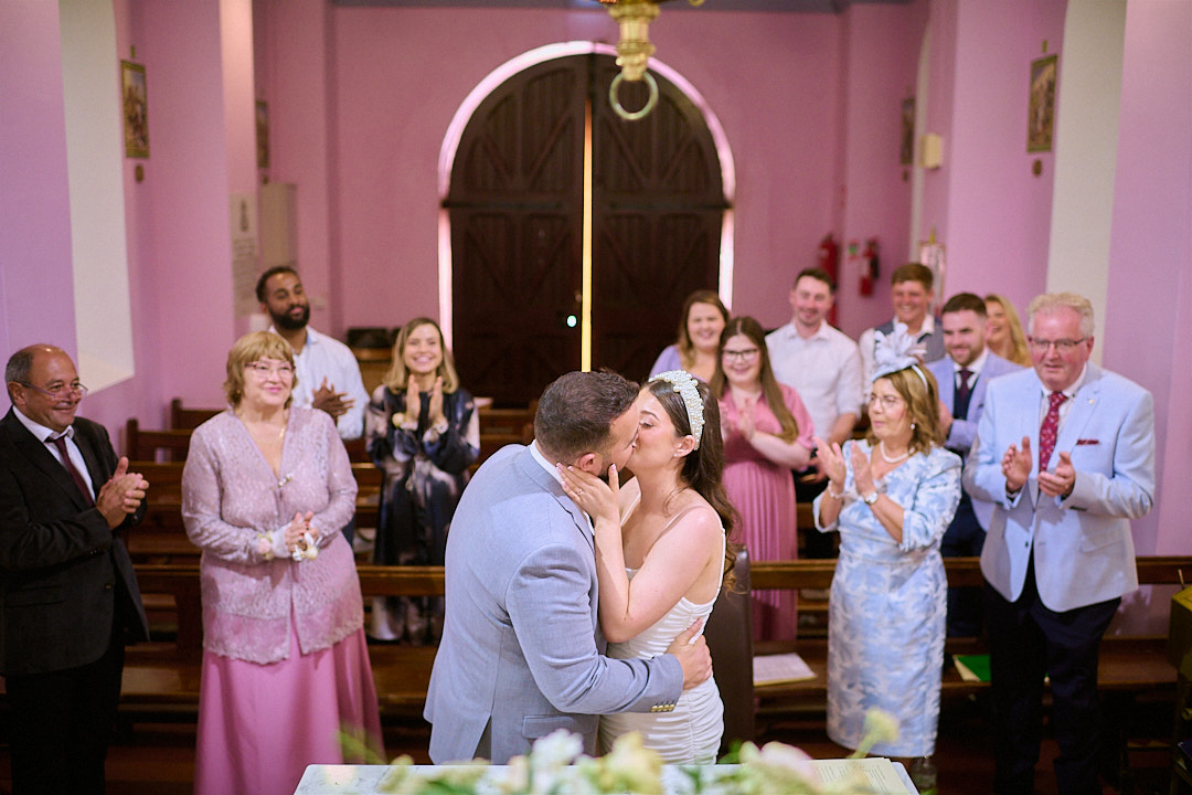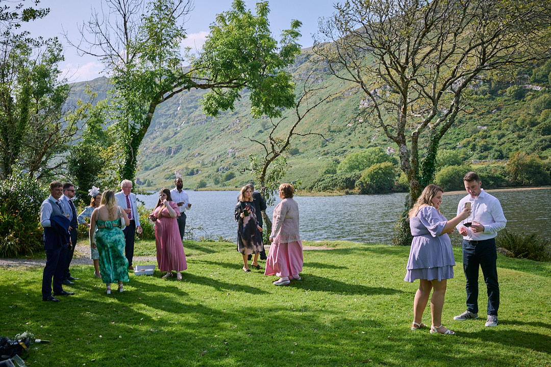 Eimear and Rosslyn chose the charming lakeside chapel in Gougane Barra for their ceremony—a peaceful, fairytale-like setting surrounded by mountains, still water, and the sound of birdsong. The day was incredible, the air was still and the whole moment felt timeless. If you’re planning a wedding in West Cork, this little chapel is one of the most stunning and serene venues you can find in Ireland.